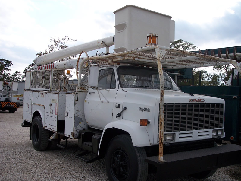 BUCKET: HI-RANGER, 2-MAN BUCKET, 5FH-48PBR, 53' WORK HEIGHT, 2 HYDRAULIC OUTRIGGERS TRUCK MOUNTED ON: 1987 GMC TOPKICK, 3208 CAT, AUTOMATIC, 163K MILES, 11R 22.5 80% PRICE: $12,500