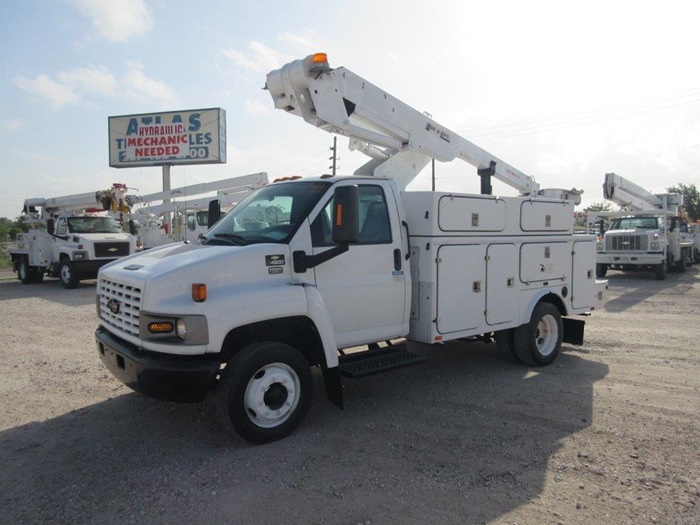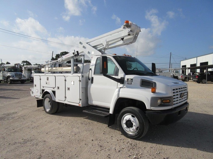 TRUCK: 2007 Chevrole C4500, 130,500 Miles, Duremax Diesel, Automatic Transmission, AC, Cruise Control. BUCKET: Duralift DTAS35, 40 Foot Working Height, Fiberglass Body..