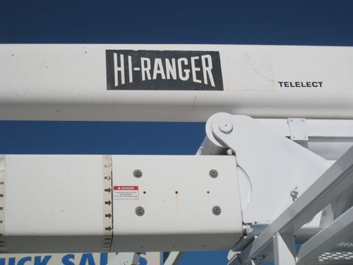 BUCKET: Hi-Ranger 5TC 55, 2 Man Bucket, Hydraulic Winch Material Handler, 4 Hydraulic Outriggers, Commercial Body Line Body, Pintle Hitch, Hydraulic Circuits, 60 Foot Work Height.