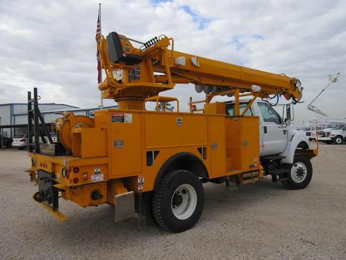 TRUCK: 2008 Ford F750, 34,360 Miles, CAT Engine, 7 Speed Transmission, A/C, Cruise Control. DIGGER: Altec DM47R, 23,790 Lb Capacity, Riding Console, Heel Winch, Pole Claws, 4 Outriggers, PTO Hours 1244.